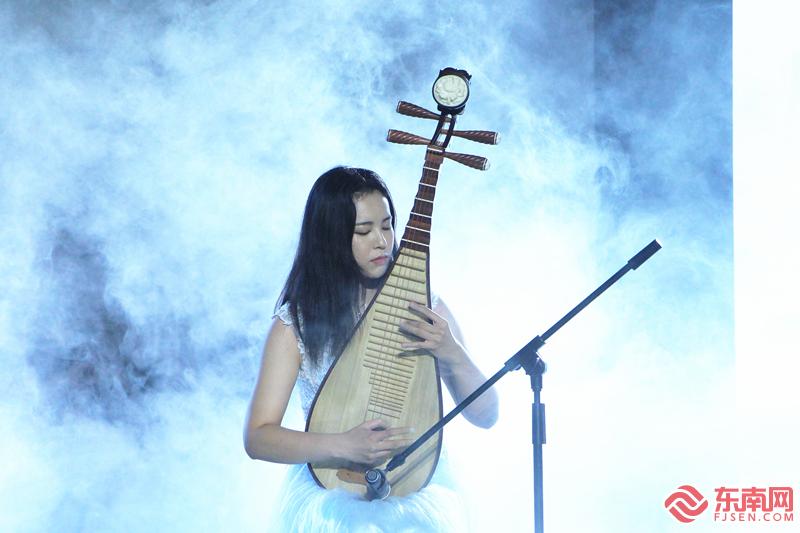 配乐诗朗诵《琵琶行》片段,图为琵琶演奏者李安琪(东南网记者 李霖 摄)