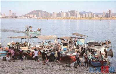 8月17日早上7点多,翔安区琼头村渔港,渔民满载而归。