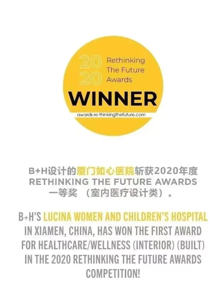 如心妇婴医院将“3H”原则,即“整体照护”、“酒店式风格”和“家庭般温暖”,融入到设计的每一个细节当中,创造出有利于疗愈、如家一般温馨的医院环境,斩获了2020年度RTF设计大奖一等奖(室内医疗设计类)