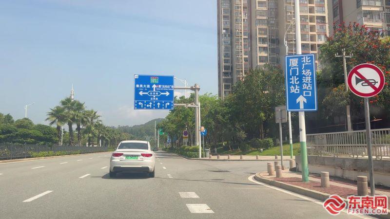“五一”假期前,陈雨农从厦门岛内搭车前往厦门北站北进站口乘高铁,他发现路上的指导标识并不醒目,且看不到北站的建筑物,临近北进站口的道路并不宽敞,周边还有工地,会担心误走。他建议在通往厦门北站北进站口道路上,在不同视角增设醒目的指引标识。