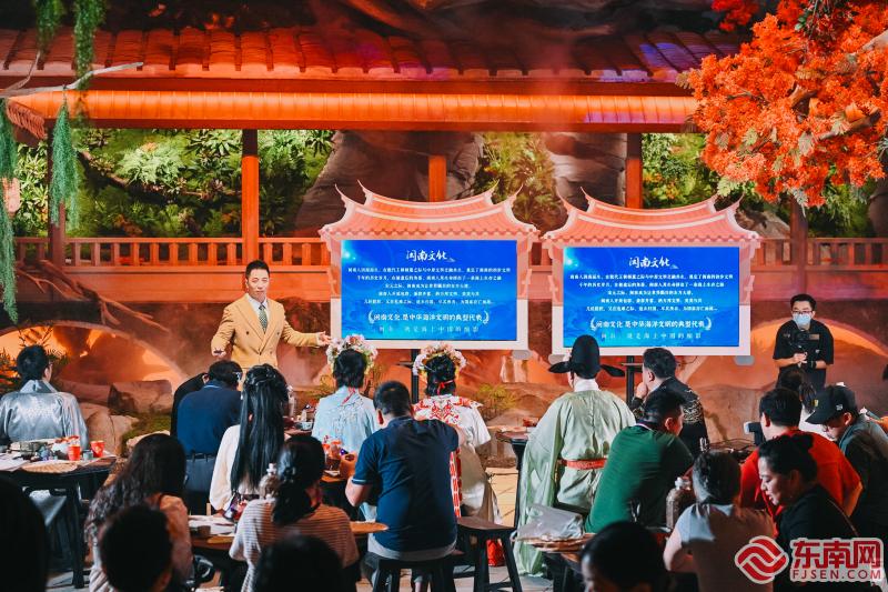 嘉宾变装后聆听主持人的介绍(主办方供图) 东南网10月11日讯(记者 刘玮)变装化身、移步换景,穿梭宋元明清千年时光,沉浸式演绎品味闽南故事……10月11日,全国首个闽南幻境主题公园“屿见时光”项目体验区正式在厦门亮相,项目以“打造全国文旅新标杆、厦门夜经济新高地、全球闽南文化新窗口”为愿景,预计2025年上半年开业。