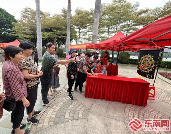 趣味游园活动(金山街道供图) 东南网10月14日讯(记者 夏菁 通讯员 林润钰)又是一年重阳时,为弘扬中华优秀传统文化,营造尊老、敬老、爱老、助老的良好氛围,近日,厦门市湖里区金山街道各社区纷纷组织了一系列丰富多彩的活动,为老年人送去节日的问候和社区的关怀。 后坑社区举办了以“九九重阳·乐在游园”为主题的趣味游园活动。活动现场设置了投壶、夹乒乓球、投飞镖、吹气球等游戏,让老人们在游戏中感受到了挑战与乐趣,更增添了浓浓的节日氛围。 高林社区开展重阳节团建活动。社工和志愿者们带领老人们一同到达东坪水库。趣味横生的互动小游戏和围炉煮茶,让大家在欢声笑语中放松身心、增进友谊。金安社区则组织志愿者开展户外团建活动,旨在弘扬中华民族尊老爱老的传统美德,增强志愿者之间的凝聚力与团队协作精神。