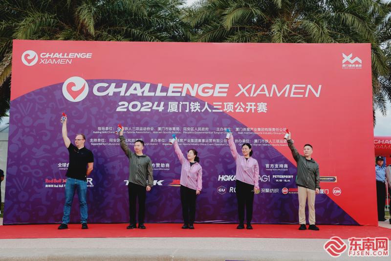 领导嘉宾为赛事鸣笛开赛(东南网记者 刘玮 摄) 东南网11月9日讯(本网记者 刘玮)11月9日,2024 Challenge Xiamen厦门铁人三项公开赛在厦门环东浪漫线美峰体育公园进行第一个比赛日的比赛。有上千名选手参加了全程(51.5km)组和半程(25.75km)组,骑跑两项组以及小铁人组和小小铁人组的比赛。在10日的第二个比赛日中,还将有400多名铁人将挑战全长113km的中距离项目,这其中还包括为年度积分而战的17名职业选手。 同安区人民政府副区长何岚岚、同安区文化和旅游局局长陈丽霜、厦门体育产业集团总经理王玉良、厦门体育产业集团总经理助理、赛事公司总经理、执行董事曹斌等领导出席了9日的开幕式并鸣笛开赛。 全程组的选手们先在同安湾海域展开1.5公里游泳赛段的争夺,自行车赛段与跑步赛段均在平整的环东彩虹跑道上进行,全程组的选手需要完成4圈共计40公里的骑行和2圈共计10公里的奔跑。不同组别的区别仅为各赛段长度不同。骑跑两项组的选手不进行游泳赛段,而是进行跑步——自行车——跑步的比赛。 |