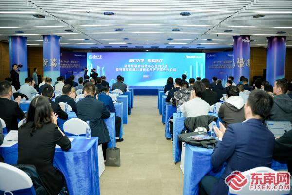厦门大学-东软医疗磁共振联合研发中心签约仪式在厦大举行(厦大供图) 东南网12月14日讯(本网记者 刘玮 通讯员 戴佩琪)12月13日,厦门大学-东软医疗磁共振联合研发中心签约仪式暨物理智能磁共振技术与产学医合作论坛在厦门大学思明校区举行。活动汇聚了来自学术界、医疗界和企业界的众多嘉宾,共同探讨如何通过深度合作推动磁共振技术的创新发展。 厦门大学校领导李智勇表示,磁共振技术作为现代医学影像的核心技术之一,其发展前景广阔且充满挑战。希望通过联合研发中心这个平台,整合双方优势资源,实现科研与产业的深度对接。厦门大学将充分发挥在人才培养以及基础研究和学科交叉方面的优势,与东软医疗在磁共振成像技术的研发、产业化等方面紧密合作。 厦门大学附属第一医院原院长王占祥代表厦门医务工作者主动参与医疗技术创新与学科建设。他表示,希望通过参与联合研发中心的工作,能够将临床需求与科研创新紧密结合,推动磁共振技术在临床应用中的不断优化与拓展。同时也期待借助这一合作平台,加强医院与高校、企业之间的学术交流与人才培养,提升医院的科研水平和医疗服务质量。 东软医疗党委书记宋奇表示,二十多年来,东软医疗为突破高端磁共振的技术壁垒,进行了长期的探索和积累,目前已实现1.5T到3T磁共振全部核心技术的自主可控。希望发挥东软医疗的创新能力和厦门大学的科研优势,使联合研发中心成为我国磁共振技术创新发展的重要引擎,为发展医疗健康领域的新质生产力注入源源不断的动力。