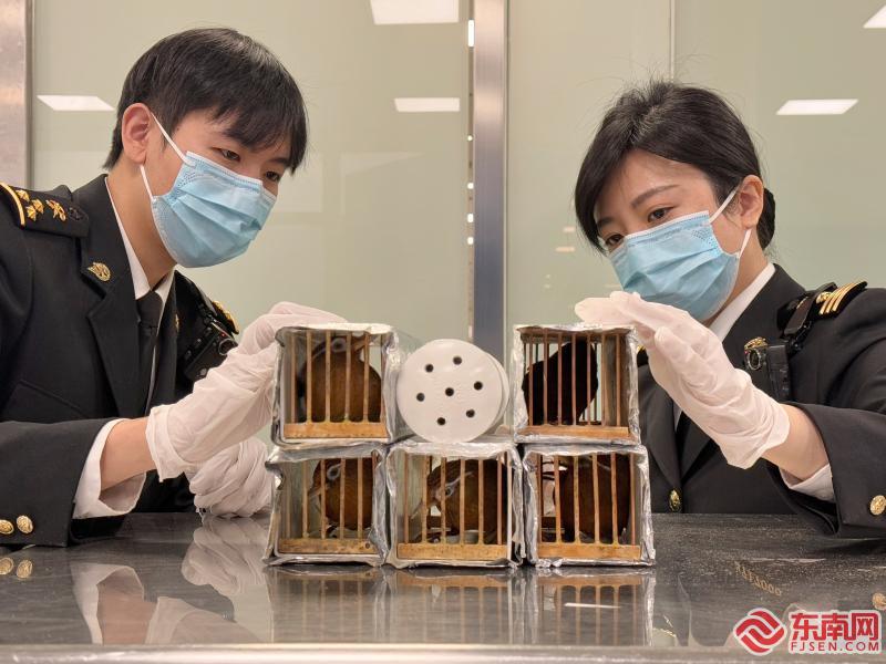 18日,厦门海关在执行出境航班监管任务时,在一名旅客行李中查获6只活体鸟类,经鉴定均为濒危动物画眉鸟。