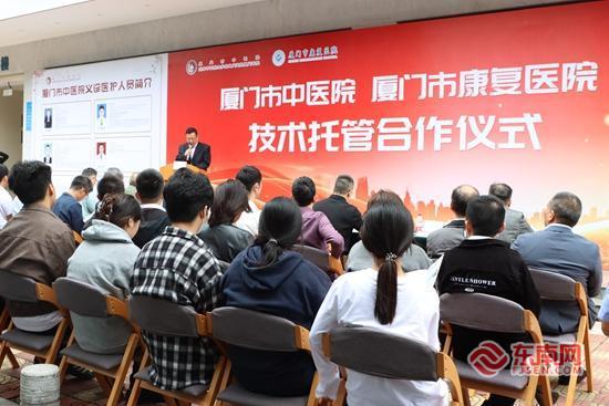 签约仪式现场 东南网记者 刘学佳 摄 东南网11月18日讯(本网记者 夏菁 刘学佳 李奇)11月18日,厦门市中医院(北京中医药大学东直门医院厦门医院)与厦门市康复医院举行技术托管合作签约仪式,标志着两院合作迈入全新阶段。此次深度协作将有力推动市康复医院在学科建设、诊疗能力与人才队伍等方面的全面提升。 专家团队赋能 提升诊疗服务水平 活动现场,厦门市中医院党委书记蔡成福与厦门市康复医院党支部副书记、院长林永鸿共同签署技术托管合作协议,标志着双方深度协作正式开启。 根据协议,厦门市中医院将向市康复医院注入优质专家资源,包括选派康复科专家常驻市康复医院同安总部神经康复科,全面参与并指导业务开展;定期选派针灸康复科邱东升主任医师团队、骨一科熊慧夷主任医师团队、骨三科许兆光副主任医师团队、内分泌科曹红霞主任医师团队、儿科李蕙主任医师团队等多个知名专家团队,前往市康复医院思明分部坐诊。专家团队的深度融入,将推动疑难病例讨论、业务讲座与人才“传帮带”工作常态化开展,显著提升相关专科的诊疗服务水平。 在此基础上,双方将协同打造中西医结合的儿童康复旗舰科室,通过资源整合与定向培养,助力市康复医院构建特色专科优势。同时,厦门市中医院每年将接收市康复医院选派人员进修深造,为其人才梯队建设与专业技能提升提供一条高效、系统的培养通道。