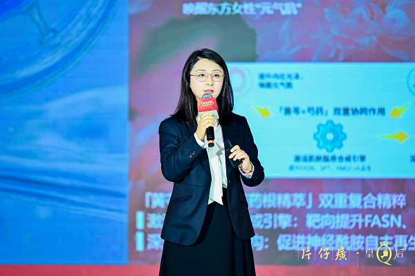 林国强现场致辞(主办方供图) 科学增长:筑牢创新根基,打造成分IP壁垒 穿越周期不能仅凭定力,更需要拥有随时间推移而愈发坚固的竞争壁垒,对于片仔癀化妆品来说,这一壁垒无疑是经得起市场检验的科研底气。片仔癀(上海)生物科技研发有限公司副总经理赵玥在会上带来了品牌在“三维健康白”和自研“雪肌因”的最新成果。 “三维健康白”科学体系将公众对美白的认知,从单一的“抑制黑色素”,提升到管理色素、光泽、结构三维联动的“肤色生态系统”高度。在此基础上,片仔癀化妆品以中式成分双花根粹协同肌肽+、烟酰胺、凝血酸等科技成分,搭载温和促渗技术,创新性研发出“雪肌因”,构建起“褪黑、抑黑、防黑”三阶美白体系,并已经运用于其最新的雪肌润白系列产品中。赵玥表示,未来片仔癀化妆品还将持续围绕成分、科技、美白三个层面,放大品牌在科学领域的积淀,构建起全面化、系统化、专业化的科学体系网络。