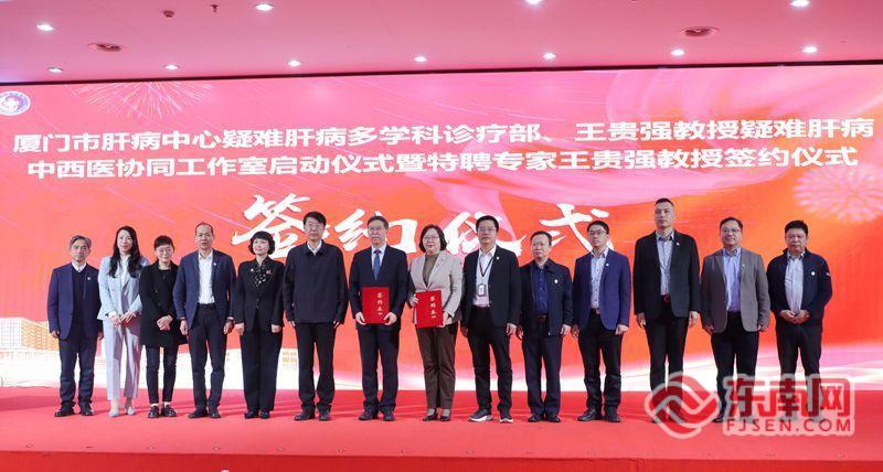 “厦门市肝病中心疑难肝病多学科诊疗部”“王贵强教授疑难肝病中西医协同工作室” 正式揭牌 东南网记者 刘学佳 摄 东南网1月26日讯(本网记者 夏菁 刘学佳 李奇 通讯员 江昌铭 张玉辉 黄语晴)为深化中西医协同创新、提升疑难肝病诊疗水平,1月26日,厦门市中医院(北京中医药大学东直门医院厦门医院)举行厦门市肝病中心疑难肝病多学科诊疗部、王贵强教授疑难肝病中西医协同工作室启动仪式暨特聘专家王贵强教授签约仪式。 厦门市卫生健康委员会党组书记、主任、一级巡视员姚冠华,国内肝病与感染病领域领军专家、北京大学第一医院肝病中心及感染科主任王贵强教授,厦门市中医院党委书记蔡成福,党委副书记、执行院长常静玲等院领导班子成员,各职能科室负责人及肝病中心全体医务人员出席本次活动。 姚冠华对本次仪式的圆满举行表示热烈祝贺,他指出,此次厦门市中医院与王贵强教授的强强联合,是厦门卫生健康领域引进顶尖人才、深化学科建设的标志性事件,更是补齐民生医疗短板、提升区域医疗服务能力的重要举措。姚冠华希望,借助两大平台,整合各方资源,引入专家,培养人才,推动中医传承发展与中西医综合治疗,破解疑难肝病诊疗瓶颈,让厦门及闽西南地区群众在家门口就能享受到国家级顶尖诊疗服务,为区域肝病医疗事业发展筑牢坚实屏障。 王贵强在致辞中对厦门市卫健委与市中医院的信任表示感谢。他表示,此次携手厦门市中医院,正是希望以两大平台为桥梁,与厦门中医院同仁并肩攻关,围绕疑难肝病诊治深入研究探索,推进中西结合治疗肝病的科研和转化工作,让优质医疗资源惠及更多肝病患者,推动中西医协同防治肝病事业迈上新台阶。 蔡成福在致辞中表示,此次两大平台的落地与王贵强教授的加盟,既是厦门市中医院肝病学科发展史上的里程碑,更标志着厦门市中医院在疑难肝病诊疗突破、中西医协同创新、学科高质量发展的道路上,又迈出了更为坚实的一步。医院将全力支持诊疗部与工作室建设,致力于打造疑难肝病诊疗前沿阵地,提供精准化、个性化、一站式中西医协同诊疗服务,建成中西医协同创新全国示范平台,推动科研攻关与技术转化,带动区域肝病诊疗水平持续提升。 仪式上,常静玲宣读了关于成立厦门市肝病中心疑难肝病多学科诊疗部、王贵强教授疑难肝病中西医协同工作室及聘任王贵强教授为医院特聘专家的相关文件。 在全体与会人员的见证下,常静玲与王贵强共同签署特聘专家聘任协议,标志着王贵强教授正式加盟厦门市中医院。随后, “厦门市肝病中心疑难肝病多学科诊疗部”“王贵强教授疑难肝病中西医协同工作室” 正式揭牌,标志着两大肝病诊疗平台正式成立,开启了厦门市中医院肝病学科中西医协同发展的全新篇章。 作为全国首批“国之名医(卓越建树)”,王贵强教授深耕肝病与感染病诊疗领域四十余载,在疑难重症肝病、自身免疫性肝病诊治及乙肝个体化治疗等领域造诣精深,牵头修订多部国内肝病诊疗指南、主导制订亚太地区《自身免疫性肝炎诊断和治疗指南》,同时在重大公共卫生事件应急救治中勇挑重担,是国内肝病领域的领军者。 厦门市中医院肝病中心自1958年成立以来,在以“南康北关”闻名的康良石教授等三代学科带头人的薪火相传下,已发展成为集医、教、研于一体的国家级中西医结合肝胆疾病诊疗高地,是国家中医药管理局多批次国家级肝病重点专科、重点学科,连续5年获评中国中医医院最佳研究型专科,在大陆及港澳台、东南亚地区享有广泛影响力,220张编制床位、年20 万余人次门诊量、年8000余人次出院量的坚实基础,让其成为厦门肝病医疗的闪亮名片。此次疑难肝病多学科诊疗部与王贵强教授疑难肝病中西医协同工作室的成立,是对医院肝病中心学科实力的进一步提升,更是破解疑难肝病诊疗难题的重要抓手。 未来,厦门市中医院肝病中心将以两大平台支撑,依托王贵强教授团队的顶尖技术与学术资源,整合院内多学科优势,深化中西医协同诊疗模式,在疑难肝病的临床诊疗、科研创新、人才培养等方面持续发力,不断提升学科核心竞争力,擦亮医院肝病中心的金字招牌,让中西医协同的诊疗优势惠及更多肝病患者,为厦门建设区域医疗高地、守护百姓生命健康贡献中医力量。 相关链接 急性肝衰竭患者重获新生 当天,患者吴女士还特意带着一面锦旗来到现场,向王贵强教授表达诚挚谢意。 时间回溯至2018 年,吴女士曾被外院诊断为急性肝衰竭,并被建议接受肝移植手术。危急关头,她转诊至厦门中医院,院方多次邀请王贵强教授远程会诊。在中西医协同诊疗方案的精准施治下,吴女士的病情逐步好转,最终摆脱了肝移植的困境,重获健康。 王贵强表示,厦门市肝病中心疑难肝病多学科诊疗部及中西医协同工作室的成立,旨在依托临床经验与最新研究进展,推动科研成果向临床诊疗技术转化,惠及广大患者;同时也希望借助相关活动的定期开展,快速提升当地肝病诊疗水平,造福一方百姓。他提到,厦门中医院肝病诊疗实力雄厚,中西医结合更是其鲜明特色。在当前肝病诊疗中,除了西医的精准施治、抗病毒及病因治疗外,中医调理同样发挥着关键作用,其对中医治疗理念和疗效也高度认可。通过中西医协同发力,能够进一步提升临床疗效,帮助患者尽快康复,实现最佳诊疗效