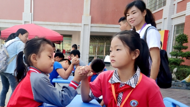 图:选手们正在进行掰手腕比赛。(冯立东摄) 10月19日,由区委宣传部、区教育局主办,集美区灌口中心小学承办的集美区第二届“嘉庚童玩节”小学闽南童玩大赛在集美区灌口中心小学拉开了序幕。来自集美区29所学校的近320名学生参加了此次活动。 此次比赛共设有抬新娘、踢毽子、旱地划龙舟、地球棋、滚铁环接力等11个项目。与第一届不同的是,比赛新增了掰手腕项目,而且参与的学校和总人数都比第一届多。在比赛现场,孩子们在老师的带领下有序进场,逐一开展项目比拼,踢毽子、抽陀螺、玩沙包、滚铁环……趣味盎然的比赛内容让孩子们玩得不亦乐乎。“除了在学校练习以外,爸爸专门给我从网上买了陀螺,和我一起在家玩。”乐海小学的选手小鹏自豪地说,在小区广场玩的时候,经常能吸引到很多小朋友来观看。 “童玩游戏崇尚‘有品’运动,即有品德做人、有品质做事、有品位生活,这与嘉庚精神不谋而合。”区教育局相关负责人表示,通过此次的童玩大比拼活动,旨在让学生们把嘉庚精神内化于心、外化于行,让他们在比赛中展示精气神,聚集正能量。 据悉,本次活动是集美区中小学“嘉庚精神”宣传月主题教育实践系列活动之一。值得一提的是,10月20日,2019厦门市第二届“嘉庚童玩节”小学闽南童玩大赛也在灌口中心小学举行,来自全市6个区及市属校共13个代表队400多名学生竞逐11个童玩比赛项目,参赛代表队和参赛人数也比第一届多。(记者:冯立东 来源:集美报) |