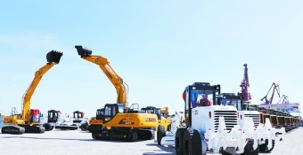 厦工此次出口非洲的成套系列化道路施工装备。(记者 张奇辉 摄)