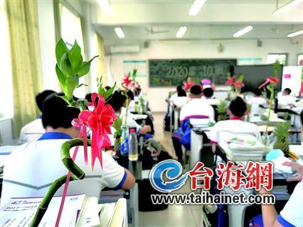 闽南语称凤梨是“旺来” 在每位考生的座位上,都有一份学校为他们准备的特殊礼物:一支系着红色丝带的水竹和一颗凤梨,它们分别寓意着“节节高”和“旺来”。学校的细心安排,也让考生们喜笑颜开,信心倍增。