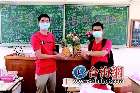 考前送凤梨 期盼“旺来” 昨天早上八点,厦外考点考生基本已入校,他们纷纷走进那间熟悉的教室,与同学和老师们一起做最后的考前动员。