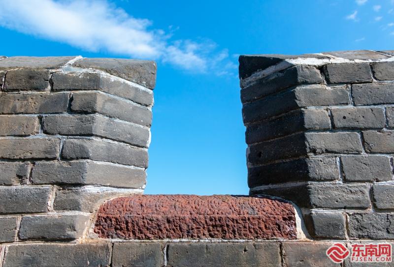 金山岭长城的垛口,两侧的墙有120度以上的斜角。 东南网记者 李奇 摄