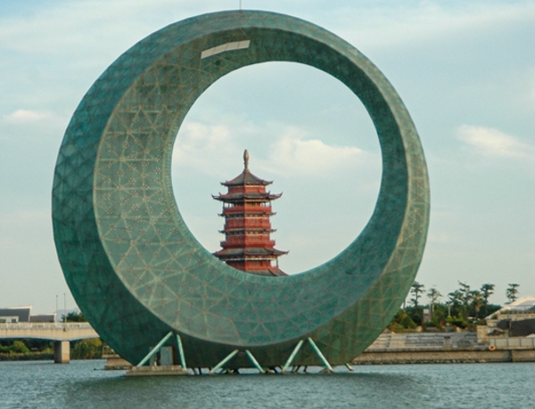 图一:月光环、杏林阁。(林志杰 摄) 月光环是园博苑重要的配套景观之一,位于园博大道终点处,立于观景平台北面约66米的海水中央。其设计理念来源于月的阴晴圆缺,通过可调节LED夜景灯,实现“海上生明月”的景观。 10万盏灯珠煮一天一夜 还需防尘抗摔抗腐蚀 月光环外径36米,有32米露出水面,内部为钢结构,外覆钢化夹胶玻璃。月光环的玻璃房建筑给夜景工程改造提供了良好条件,通过10万盏LED灯珠的排列组合对画面进行展示,设计还采用了水跟月的结合,营造出“月下飞天镜”的意象。 为了打造这些景观,施工单位颇费了一番周折。“10万盏灯珠都要放在开水中煮一天一夜,进行防水、防尘及耐高温检验。”项目施工单位厦门优数科技有限公司总经理叶永典告诉记者,挑选灯珠时要考虑环保节能,还要考虑可持续性,因此进行了多次试验。此外,由于地处海洋性气候,月光环内部的玻璃房为温室环境,水汽大,盐分足,腐蚀性比较强,所以选择的材料必须抗腐蚀。 白天玻璃房高温60℃以上 矿泉水送进去就不能喝了 工程施工时刚好处于夏季,月光环内外部施工环境很差。据介绍,为了运送施工材料,施工方专门搭建了浮桥,但浮桥受水面涨落的影响很大,不时会发生坍塌。由于月光环的外壁全是玻璃,施工时工人要从月光环底部钻进去。白天,“玻璃房”里的温度达60℃以上,矿泉水送进去就不能喝了。“这样的施工环境是从未遇到过的,密不透风像洗桑拿一样。”叶永典说,很多工作人员中暑,为了赶工期只好彻夜施工,即便是晚上,里面也还是四五十摄氏度的高温。 最忙的时候,现场有100多名工人同时施工。