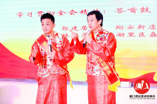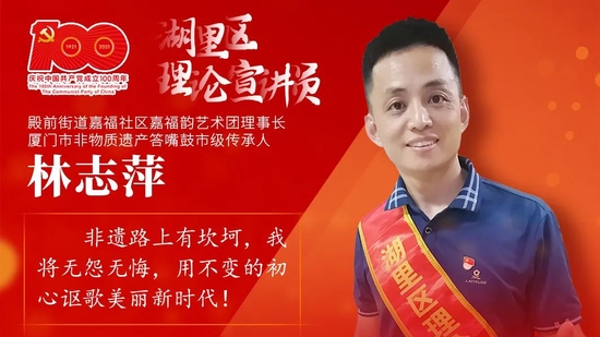 近年来,湖里区大力加强新思想学习,不断探索理论宣讲大众化、对象化、分众化模式,打通基层宣讲“最后一百米”,助力新思想“飞入寻常百姓家”,2021年获评全市理论宣讲工作“先进集体”,在宣讲队伍中建立临时党支部做法被全国党史办简报刊发,参加全市理论宣讲轻骑兵比赛成绩优异,主要经验做法被《厦门宣传》刊发。 在这些亮眼的成绩背后,有一群理论宣讲员,他们扎根基层,用饱满的热情、通俗的语言、翔实的数据,传递党中央声音,讲述湖里故事,共同画出“同心圆”,激昂唱响“主旋律”。湖里头条特推出“扎根基层、立足岗位”优秀宣讲员系列宣传,让我们共同领略他们的风采! 引言:将答嘴鼓融入小品表演中的微电影,他至今拍了20多部,它们在厦门地铁移动电视,以及新媒体平台展演,让答嘴鼓成为这座城市流动的文化符号。他制作的抗疫题材的短视频《这场战役会胜利》还被人民日报报道。借助社交媒体和艺术创新,林志萍让答嘴鼓获得了新的生命。