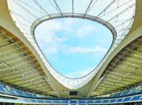 白鹭体育场的屋盖使用轻薄的新型材料,既透光又抗风。