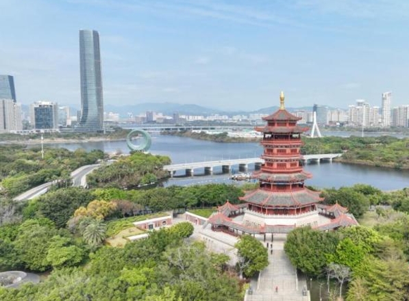 俯瞰杏林湾内的园博苑。记者 贾天勇 摄