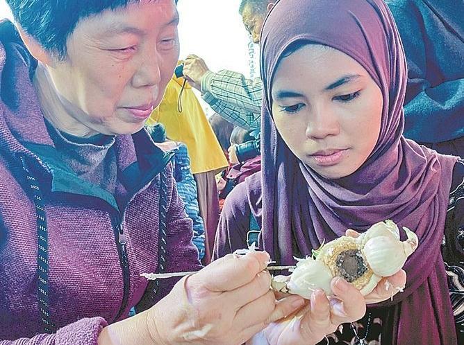 昨日下午,丙午年两岸(朝宗宫)文化雅集在沙坡尾举行。来自厦门、金门两地的书法家挥毫泼墨,写春联、写“福”字,为市民游客送祝福;在厦留学生和周边社区居民则体验了水仙花雕刻。据介绍,该活动由厦门朝宗宫主办,至今已连续开展十年。图为留学生学习水仙花雕刻。(记者 罗子泓 通讯员 林坤山 摄影报道)